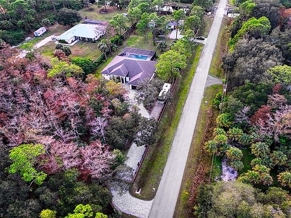 A NAPLES RETREAT DESIGNED FOR WELLNESS, PRIVACY AND NATURE. This private 2.58-acre gated estate in Golden Gate Estates offers a rare blend of modern living, wellness-focused design, agricultural capability, and exceptional privacy. Located on a peaceful no-outlet road for enhanced tranquility, the property includes a 2,644 sq. ft. main residence plus a 995 sq. ft. guesthouse built in 2025, creating a versatile multi-generational layout with two separate gated entrances. The main home features an open floor plan with 12-foot tray ceilings, 4 bedrooms & 4 bathrooms, a dual-sided fireplace connecting the living and dining areas, and a spacious kitchen equipped with a large waterfall granite island, double oven, stainless-steel appliances, and custom cabinetry. The primary suite includes walk-in closets and a well-appointed bath with upgraded tilework and high-end bidets, which are also installed in all additional bathrooms. A whole-property reverse osmosis filtration system provides purified water to both the main home and guesthouse. The separate 2-bedroom, 1-bath guesthouse offers a full kitchen, living room, modern finishes, and its own private gate, creating ideal accommodations for extended family, guests, or rental flexibility. A SELF-SUSTAINING ORGANIC FOOD FOREST. Outdoor features support an agricultural and wellness-focused lifestyle. A veganic organic garden and orchard includes 11 irrigated raised beds planted with herbs, greens and tropical crops such as strawberries, basil, fennel, Okinawa spinach, mint varieties, pineapple, oregano and more. The orchard includes mango, avocado, mulberry, starfruit, lemon, guava, banana varieties, pygmy coconut palms, longan, prickly pear, aloe, tropical apple, baobab, ice cream bean, and dragon fruit. Full-property irrigation and living soil practices support consistent production. The entire perimeter is fenced—approximately 60% with 8-ft fencing and 40% with 6-ft fencing—enhancing privacy and protecting the garden areas. The property also includes a natural swimming pool purified through an ozone and UV system, eliminating the need for chlorine or salt-generated chlorine. The pool is designed to provide clear, fresh water and can be converted to a traditional system if desired. IDEAL LOCATION FOR RECREATION AND CONVENIENCE. This location provides convenient access to both recreation and daily amenities. Nearby destinations include Big Corkscrew Island Regional Park, CREW Bird Rookery Swamp Trail, and Audubon’s renowned Corkscrew Swamp Sanctuary. Shopping and services such as Publix, restaurants, fitness options, banking, and hardware stores are just minutes away. Naples beaches, dining, and cultural attractions are within a comfortable driving distance, offering a balance between privacy and convenience.
