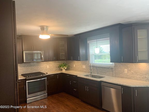 Located on a beautiful corner lot in Moosic!!This newly remodeled Ranch home is a must see!!! Everything was picked with a designers eyeHardwood floors throughoutNew lighting,fixtures and fresh paint. Kitchen has wood cabinets,granite counters new appliances and matching back splashWhat else can you ask for?The lowest level is unfinished but ready for the most dreamy basement, Baths: 2+ Bath Lev 1,Full Bath - Master, Beds: 2+ Bed 1st,Mstr 1st, SqFt Fin - Main: 1169.78, SqFt Fin - 3rd: 0.00, Tax Information: Available, Dining Area: Y, Modern Kitchen: Y, SqFt Fin - 2nd: 0.00, Additional Info: Open House SUN. Oct 29 12-2HIGHEST AND BEST By Mon 9:00 am!!!all measurements are estimated