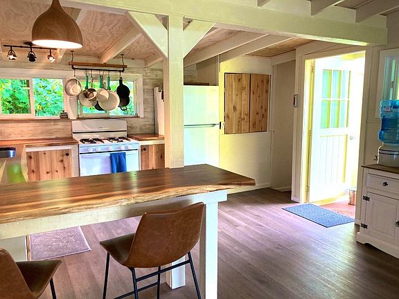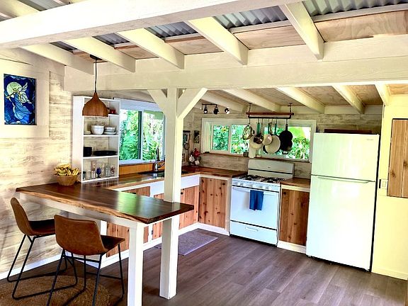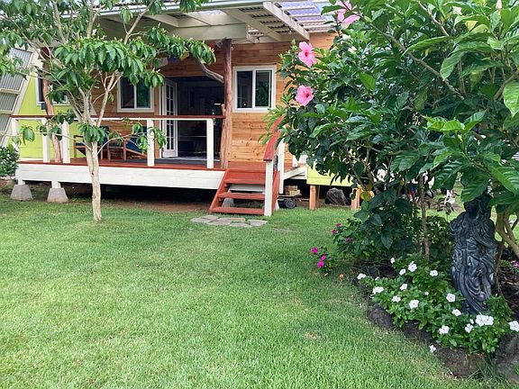 Beautiful custom off-grid home with separate ohana unit on the best street in the neighborhood. We have put a lot of love and personal touch into this home. Newly built 2 bedroom home, master bedroom with free standing soaking tub, 2nd bedroom with loft bed and climbing wall. Bathroom with shower/tub. Cedar accents used throughout the home giving an earthy, beachy, cabin-like feel. Natural wood slab countertops and a large lanai looking out over the lush tropical garden. Property is filled with an abundance of fruit trees and wonderfully fragrant flowers. Ohana studio with kitchenette, bathroom with toilet/shower. This property is fitted with a 3600 gallon catchment tank providing rain catchment water running through 3 filters and a UV light. The 24v solar system provides plenty of power to run a full size fridge, lights, washer and more. This street is truly special, with wonderful neighbors and beautiful homes It's just a 10 minute walk to a stunning black sand beach, 3 blocks from the communal park, with hot ponds and tide pools a 10 minute drive away. There is also the amazing SPACE community circus center in the neighborhood. Please note; sellers are home-schooling and would prefer to show on Wednesdays only. Come live your best life! Aloha!!