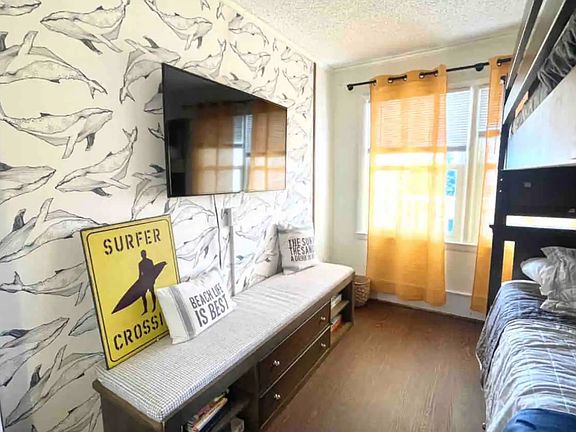 Master bedroom with full size bed, 2nd bedroom with twin bunk beds.