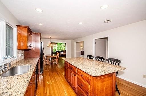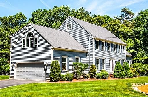 Beautiful five-bedroom home on desirable cul-de-sac. This spacious home features an open floor plan on first level, foyer with grand staircase, large family room with fireplace, living room, formal dining room, and large modern eat-in kitchen with granite counters and sliding door leading to lovely deck and huge professionally-landscaped back yard. Stunning fully finished basement with entertainment room, full bath, and rooms for an office and gym. Second level offers four bedrooms including master suite with honed granite counters in bath plus full bath with Carrera marble counters. Top level offers fifth bedroom with skylights. Central AC and gleaming hardwood floors. 2-car attached garage with mudroom for easy entry into home. Convenient to Patriot Place.