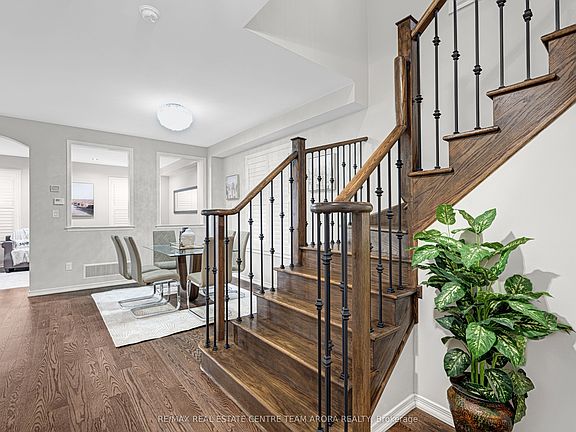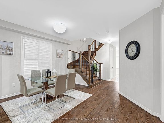 Backs onto open spaceElegant hardwood flooringModern kitchenStainless steel appliancesStylish backsplashCeramic flooringCozy breakfast area