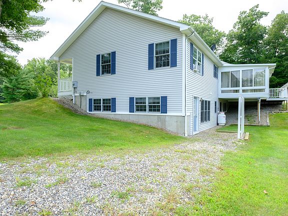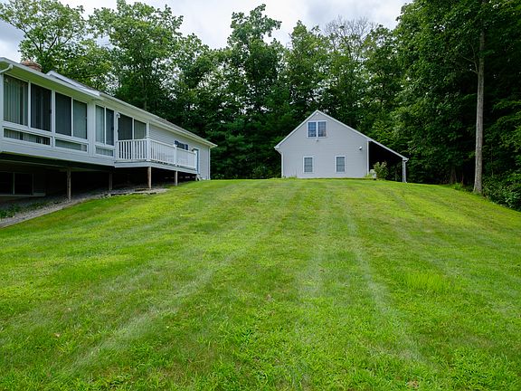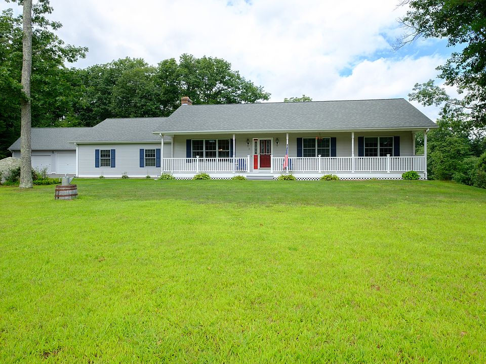 Unique and special, this Ranch offers a great room with floor to ceiling fireplace, hardwood floors and access to a spacious 12' x 24' sunporch with berber carpet. The kitchen has corian countertops, newer appliances and a breakfast bar. The dining area has skylights and is open to view the fireplace for your dining pleasure. In addition to the great room area, the 1456 square foot main floor offers a front to back carpeted master bedroom with a sky lit master bath, a 2nd bedroom, a hall laundry and a hall entry with a large coat closet. On the walk out lower level is a legal in-law apartment with a full kitchen and pantry, a full bath with stackable laundry, a living room, bedroom, ,2 additional rooms for workout or study, a new floating floor in livingrm and kitchen and a berber carpet in bedroom.......In addition to the 3 car attached garage with generator hookup, there is a 3 bay 1040 sq. ft garage insulated with heat and air conditioning for car buffs...The attic is fully floored for additional space and storage and the lean to out back is great for covering outside equipment....Next to the barn is a raised bed garden area. . The front porch offers hours of enjoyment just relaxing and watching the world go by...Dont delay on this unique home!