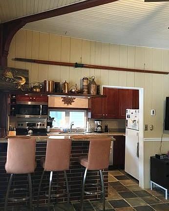 This is a truly unique and beautiful River Front setting to call your home. - A truly unique home that sits along the river. Remodeled 2 bedroom features a modern kitchen with breakfast bar , stainless steel appliances, and granite counter tops. The living room has beamed ceiling, recessed lighting, and stone flooring with radiant heating system. Walk out of the living room onto the large deck over looking the river. Plenty of storage in the lower level and a 2nd outdoor deck with built in table and chairs with bbq area. Rent includes water, sewer, trash and snow removal. (RLNE1937302)