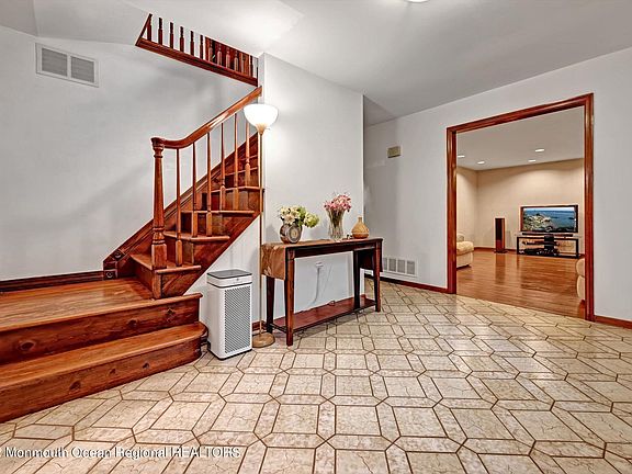 Situated in Triangle Oaks One of the most sought after developments in Marlboro Twnshp. This 4/5 BR 2.5 BA Colonial is offered at an exceptional price. Features include formal LR & DR w/HW flooring. A 19x12 Eat in Kitchen completely open to step down FR w/Wood burning FP & Custom Tiled Wall. Office/5th BR on 1st level w/HW flooring adjacent to powder room. MBR w/laminate flooring, WI Closet & Full BA. 3 Oversized BR's all w/laminate flooring. Updated main BA w/dble sink vanity. Full Basement. Large backyard w/oversized paver patio. Close to Shopping & NYC Transportation!
