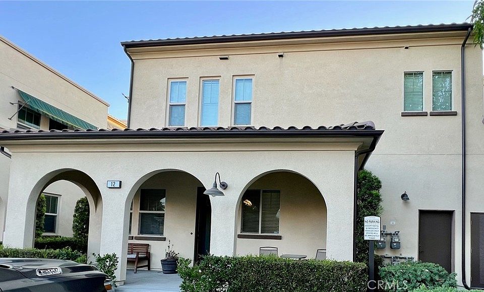 Currently set up as a 2 bedroom 2 1/2 Bath with the possibility of a 3rd bedroom or other flex space with some imagination. Open concept with natural sunlight is the first thing that comes to mind when you enter the front door of this end unit, well kept condo in Sendero located in Rancho Mission Viejo. The living room and the kitchen flow seamlessly together for family and friends to gather, possibly enjoying a community barbeque area just outside the backdoor with a firepit and cozy furnishings as well. There is direct access to the 2 car garage with epoxy flooring. The primary suite has a ceiling fan to help on those warm evening as well as an extra large walk-in closet. Primary bathroom has dual sinks and a large shower and is in tip-top condition. Conveniently located upstairs you will find stackable washer/dryer which are included. This community has everything you need and more, pools, pickleball, tennis, bocce ball, biking trails, walking trails, clubhouse, fire pits, bar, spas, dog park, gym, playground...too many to mention, but there are endless activities to enjoy while calling this place home.