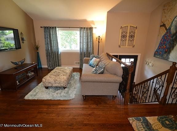 Welcome home to historic Allentown, NJ! This stunning bi-level home has been completely remodeled! The home features 4 bedrooms and 2 baths. The bathrooms have been completely gutted and renovated with gorgeous ceramic tile and all new fixtures. The downstairs bathroom also features a custom built shower. Downstairs, you will also find the spacious living room with a door that leads to the back backyard cement patio. You will also find the fourth bed room, the laundry/utility room, and the entrance to the one car garage. Making your way upstairs, you're instantly greeted with a custom built wrought iron and stained wood banister as well as cherry stained hardwood flooring throughout. The upstairs features 3 bedrooms, the other renovated bath, and the living room with a picture window.