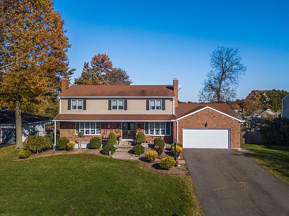 Many wonderful memories are waiting to be created here at 12 Angela Drive. Highly popular cul-de-sac location! This well-loved 4-Bedroom Colonial Homestead is an original-owner home, designed & custom built with many beautiful features. Spacious open floor plan, 43 open covered front porch to enjoy in your favorite glider swing, large rooms, bow windows, 3 full masonry fireplaces, 4 full bathrms, 6-panel wood doors, hardwood floors on main & upper levels. Finished walk-out lower level w/in-law possibility offers full kitchen & full bath w/separate entrance leading to awesome covered tumblestone patio in backyard. Many improvements made to flooring, main kitchen & bathrooms. Very gracious formal Dining Rm & Formal Living Rm w/marble & granite fireplace. Your favorite happy place could well be the huge main level Family Rm w/rustic stone fireplace which flows into the kitchen, dining area & sunroom w/vaulted ceiling. Sunroom exits to upper level 27 x 12 deck overlooking fully fenced level backyard. Upper level offers 4 bedrms incl Master Suite with full Bth, walk-in closet & addL Closet. Plenty of attic & basement storage. Very functional mudroom/laundry area & small office located on main level. Updated heating/central air system. Central vac, intercom system, security system & lawn sprinklers. Natural gas hook-up for grill & generator hook-up. 2-car Garage w/nicely finished interior. Great landscaping. Agents/Seller related. This property is an Estate & conveys as-is.