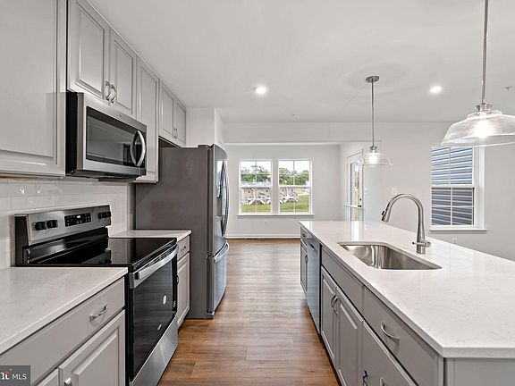 *OFFERING UP TO 18K IN CLOSING COST ASSISTANCE FOR PRIMARY RESIDENCE WITH USE OF APPROVED LENDER AND TITLE!** Tired of lugging groceries up the stairs - Meet the York II Grade Townhome with a parking pad for 4 Cars. This open floorplan home offers a MAIN LEVEL ENTRY welcoming you to home with luxury finishes like a 8 1/2 foot quartz prep island with single bowl undermount stainless sink and 42 inch upper gray cabinets that reach the ceiling for extra storage. Main floor has waterproof luxury vinyl plank flooring throughout and offers a family room that opens to the kitchen, breakfast area, powder room and morning room (3 level extension on every floor). Kitchen includes Whirlpool stainless steel appliances including a French Door refrigerator that match the brushed nickel cabinet pulls and pendant lights over the prep island. The white Quartz countertops have gray and black veining bringing the feel of Carrera Marble to your kitchen. A white 3 x 12 textured ceramic tile backsplash is the finishing touch on the luxurious kitchen. The kitchen includes cabinet above the refrigerator, pantry closet, and stainless goose-neck kitchen faucet with pull down sprayer. The morning room offers a door for a future deck and offers 2 full size windows off back of home that will invite allow the afternoon sun to pour in. Upstairs you'll find 3 bedrooms. The primary bedroom comfortably fits a king-sized bed and features a soaking tub, step in shower with a seat, and dual sink vanity. White Ceramic tub surround and wall tile for the shower. Primary bath offers 2 windows that also allow lots of natural light. Primary bedroom offers 3 full size windows and large walk in closet. Secondary bedrooms will share hall bath with ceramic surround for tub-shower combination bath. This home includes a top load washer dryer on bedroom level that makes laundry a breeze. The lower level features a finished recreation room with walk-out exit, two full size windows, powder room, large storage closet, and unfinished room for storage, a home gym or workshop. This energy efficient home offers insulated windows, entry doors, 2x6 construction, blown insulation in the attic and spray foam insulation that expands into every crack and crevice. The construction of this floorplan includes a sound-reducing core wall that is also a fire barrier. Home includes a fire suppression interior whole - house sprinkler system. Backyard is fully sodded and front entry features landscaping package and charming bay window. Community is close to YMCA, Codorus State Park, Lake Marburg, restaurants and shopping. Just minutes across the PA-MD line don't miss this luxury townhome nestled in the rolling hills of Hanover, PA.