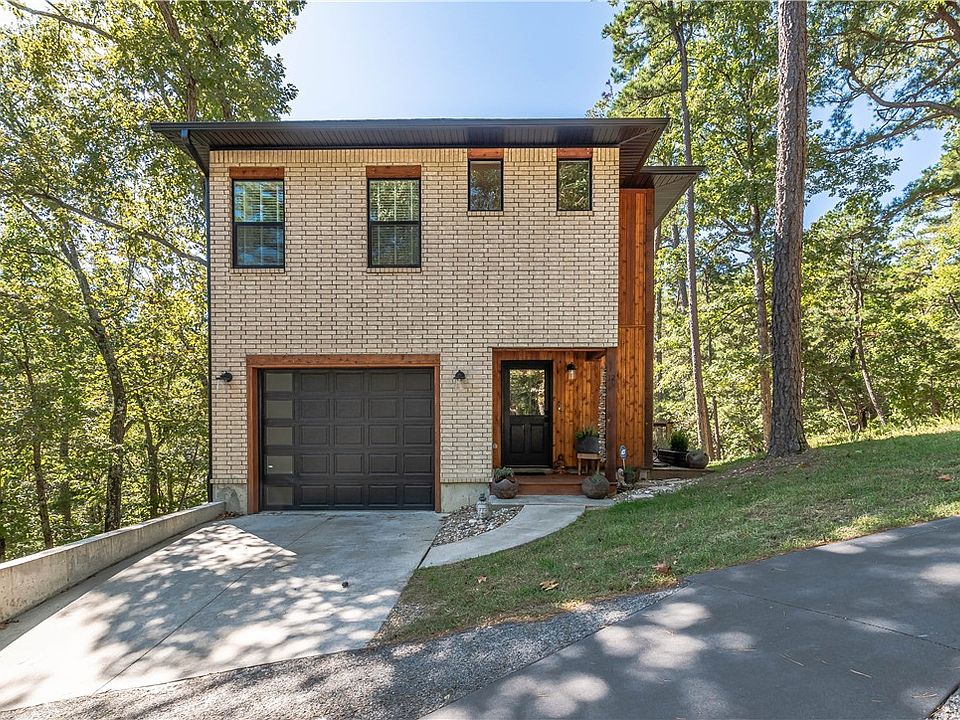 Priced Below recent appraisal. Tiny home with big living feel. Nestled on 2 lots with end street privacy. Open Kitchen and living room. Kitchen boasts of a lot of cabinets even for a tiny home. Stainless Steel appliances and granite counter tops. Large windows looking out over the trees giving you the feel of your very own treehouse. Blinds are Hunter Douglas. Stack stone Gas fireplace that warms the house for the extra cozy feeling. Hallway closet has washer, dryer, and pantry, lots of storage. Nice sized bedroom with 2 closets and inset for dresser. Bathroom has a large walk in shower with custom tiles and glass doors. Foyer has a cute place for coats and shoes. Large deck perfect for entertaining. Over sized garage is heated and has a landing that is currently being used as an office. Extra storage in garage. Close walk to downtown Eureka Springs, trolley, and Lake Eureka. 417 sq ft Garage with an 8ft door that is Heated which gives you more sq ft.