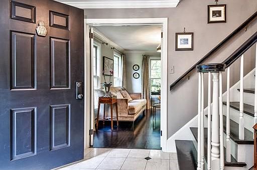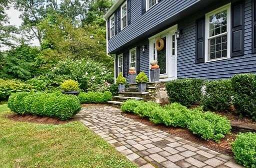 A picture perfect home welcomes you! The sellers have updated and maintained every inch of this lovely property. The kitchen renovation includes marble island with hammered sink, double wall ovens, Thermador gas cooktop with custom tile back splash, and built in eating area. The gorgeous stone fireplace, beamed cathedral ceiling, and tall windows create a fabulous family room. Spacious dining room and a first floor office with french doors. Half bath has elegant vanity & fixtures and includes laundry. Stained ebony hardwood floors throughout 1st floor. Tiled mudroom with locker storage system offers transition space from garage to finished lower level flex room. Bedrooms each have beautiful carpeting, crown moldings and large closets. Two second floor baths have each been remodeled. Master bath has lovely tiled shower! Private lot has newer stone walls, walkways, driveway, plus beautiful landscaping and large deck. All windows replaced. Newer propane heat. 2yr old AC.