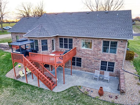 Immaculate custom home on the edge of Monett but close to shopping, the new hospital and entertainment. Enjoy the convenience of living close to town while watching the occasional deer in your backyard. This four bedroom home has two living areas, two additional sitting areas, three full bathrooms, and an additional half bath close to the garage. The kitchen features granite counter tops and an island that is open to the dining area. Cooking on the grill is convenient on the deck just off of the dining area and close to the kitchen. The walkout basement features a large family room a game area, one bedroom with private bathroom, and over six hundred square feet of heated and cooled storage . The attached garage is extra deep and there is a 24x24 ft detached shop. The RV pad has electric and a sewage dump. A 10x 18 storage building is great for tools . A home that has been so well maintained is hard to find. You will not be disappointed.
