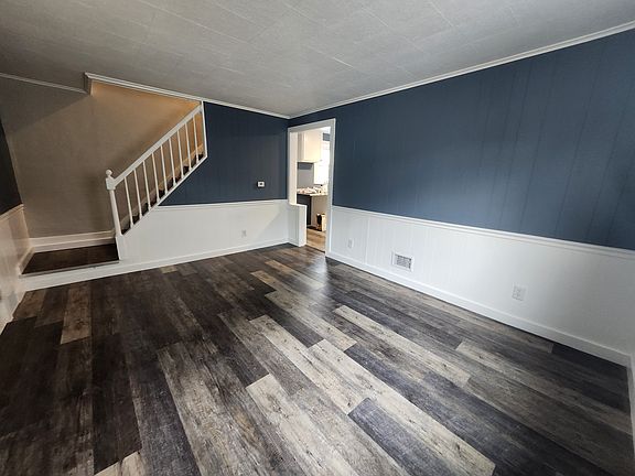 Fully remodeled, brand new floors, paint, kitchen and bathroom. All windows have been replaced with a vinyl energy efficient style. Everything inside the home has been updated and new. Off street parking. New stove/oven and refrigerator. Washer/dryer hook ups in basement. 1 year lease, tenant pays utilities, garbage removal and water are included.