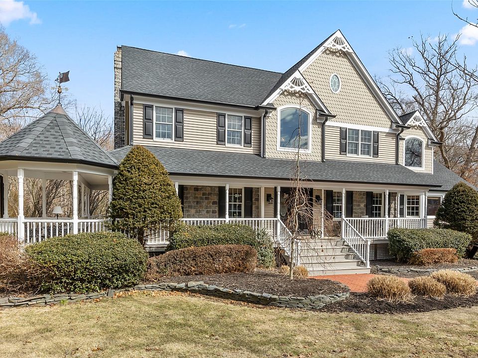 This impressive colonial residence boasts 5 bedrooms, 3.5 bathrooms, and an expansive 4,200 square feet of living space, with an option to design a second primary suite on the main level. All rooms are generously sized, including the family room, which showcases vaulted ceilings, a wall of windows, and a striking floor to ceiling fireplace. This home is enriched with numerous distinctive features, including a remarkable walkout finished basement, a fully ventilated cigar room, hardwood flooring throughout, Andersen windows, and a newly installed roof. The meticulously landscaped grounds offer complete privacy, bordering an 11 acre preserve. Additional highlights include an inground pool, multiple decks and patios, and a designated play area. Such an amazing value and opportunity to live in South Harbor Woods in the renown Mt. Sinai School District.