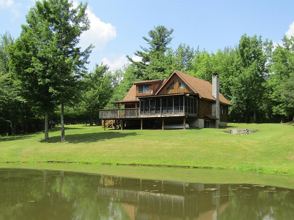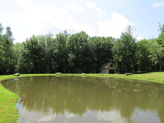 Nothing says THE CATSKILLS more than a beautiful log home! This home is located off of a quiet maintained road with a peaceful setting and over 11 SURVEYED ACRES of your own wilderness. THERE IS ALSO A STREAM ON THE PROPERTY. Sit on the deck and enjoy the mountain views and the spring fed pond that is just waiting for you to play and fish in. Offered are three bedrooms (2 on main floor and 1 on second floor), two full bathrooms, a very functional kitchen with a door to another outside deck, a stone fireplace and some wonderful interior details. Light filled rooms, plenty of storage and a generous landing on the second floor to accommodate more guests or use as a sitting area. There is a full dry basement with ample room for a workshop and game room. Doors will lead you outside from the basement giving it easy access. Located minutes from SKI WINDHAM, HUNTER MOUNTAIN, quaint Villages, STATE PARKS and streams. GREAT added bonus are the area State Parks and the Hunter Mountain Trail Head is JUST down the road. Explore the Catskill wilderness and feel the stress melt away. ONLY 2.5 HRS FROM THE GWB!