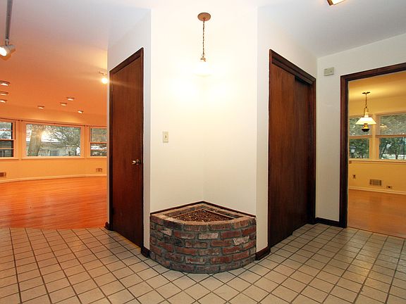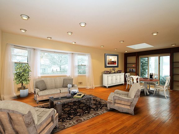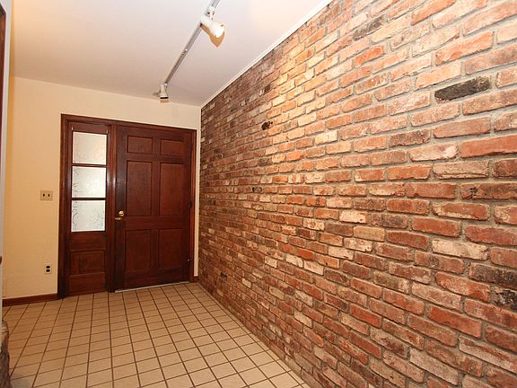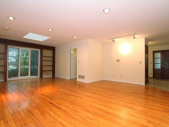 Sought after cul-de-sac location. Gracious Entry Foyer with exposed brick wall opens to sunlit Living Room and formal Dining Room with skylight, built-in custom cabinets and large triple window over-