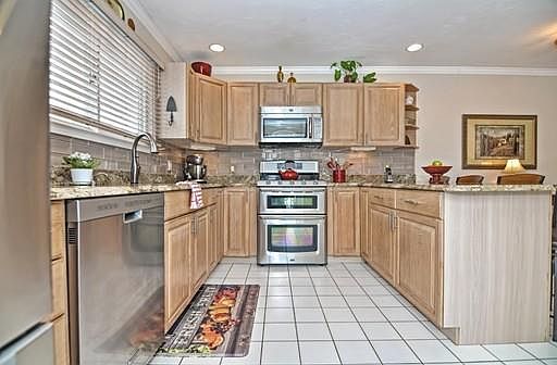 Impeccable Galleria Townhouse in prime location in complex w/ privacy & beautiful flowering plants! Enter up paver walkway to formal front entrance. Curved sun-filled staircase leads to open floor plan waiting for you to entertain! Crown molding throughout main floor. Large Living room w/ custom fireplace, chair rail & surround sound. Spacious Dining area opens to stunning Kitchen that boast beautiful granite countertops w/ sitting area, stunning glass backsplash, stainless steel appliances, double oven & more! Half bath w/new granite countertop. Upstairs Master Suite is a haven! Cathedral ceiling & double sided gas fireplace to give that extra ambiance while soaking in the Jacuzzi tub. Double sinks & plenty of closet space! Second bedroom "Princess Suite" has cathedral ceiling w/ full bathroom. Top floor has large storage area. Basement is finished & perfect for home office or playroom. Newer furnace, central air & hot water tank, new garage door & new toilets. Welcome Home!