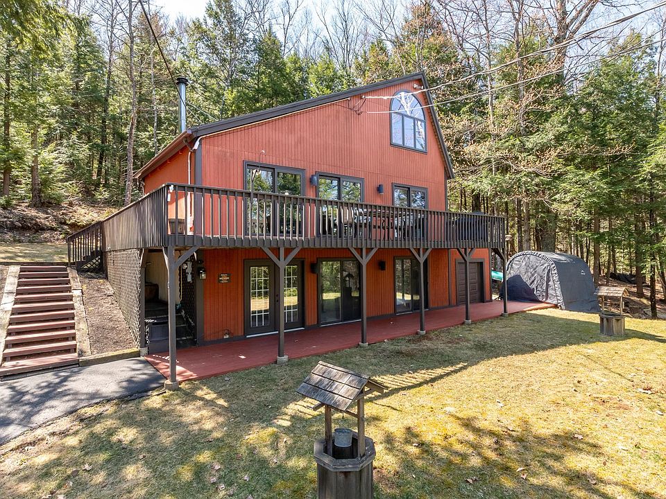 **ABSOLUTE SHOWSTOPPER** A unique find – Immaculate home, beautifully maintained by one owner for the past 11 years! Welcome to your peaceful retreat at 12 Arrowhead Lane, a beautifully maintained contemporary home tucked away in the desirable Shellcamp Lake community of Gilmanton, New Hampshire. This charming year-round residence offers the perfect blend of rustic charm and modern updates—plus the rare bonus of an additional adjacent lot, conveying with the sale for expanded space, privacy, or future potential. Set on nearly half an acre plus the included adjacent lot, this 2-bedroom, 2-bath home features over 1,433 square feet of thoughtfully designed living space and highly coveted lake views. The bright and airy open-concept layout boasts vaulted cathedral ceilings, large windows that fill the home with natural light, and a recently updated kitchen with modern appliances and plenty of storage. Step outside onto the spacious wrap-around deck—ideal for entertaining, relaxing, or soaking in the natural beauty of your surroundings. The property is just a short walk to the association beach on Shellcamp Lake, where you’ll enjoy swimming, kayaking, fishing, and year-round recreation. Whether you're looking for a cozy full-time residence, a seasonal getaway, or an investment in New Hampshire’s scenic lakes region, 12 Arrowhead Lane offers unmatched value, flexibility, and peaceful living. Schedule your private showing today and envision the possibilities!