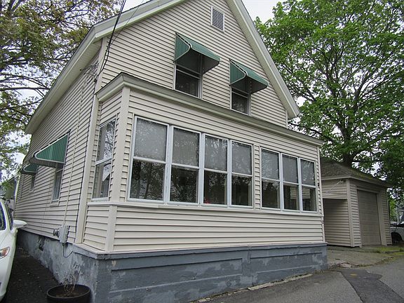 Pawtucketville colonial at the end of a dead end street includes a carport and 1 car garage with newer garage door & opener. Enclosed front porch and side entrance. Large extended living room with wall to wall carpet and drop ceiling tile, Eat in kitchen has wonderful wood cabinets, double sink, gas stove, refrigerator and electric clothes washer. There are storage cabinets and large walk in storage closet off kitchen. One full bathroom off kitchen. Large second floor hallway off back stairs has a linen closet. Three bedrooms on the second floor have wall to wall carpet as does the hall. Heat for second floor is from FHW baseboard in the back staircase. There is a house alarm and yard is fenced by neighbors. Asphalt shingle roof about 15 years old & plywood sheathing was applied at that time. Gas FHW boiler about 15 years old. Hot water tank about 6 years old. Basement shelving and workbench to stay. Buyer & buyer agent to use due diligence. Electric baseboard heat added to 3 bedrooms.