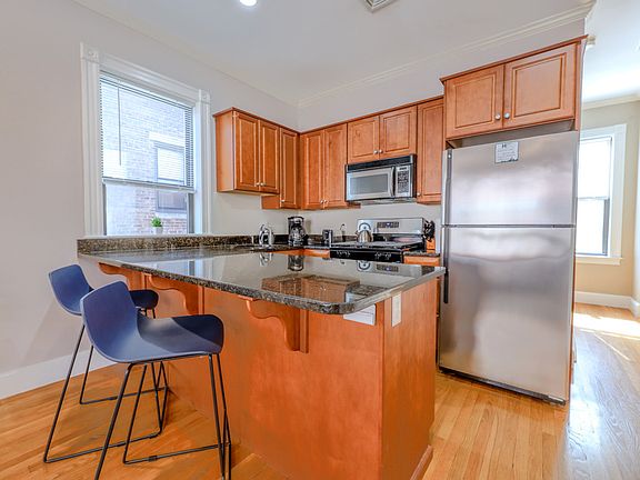 This 1-bedroom, 1-bathroom apartment is located on a side street tucked in the heart of Fenway, just steps away from Fenway Park itself. Situated on the 2nd floor of a walk-up building, this apartment is designed with simplicity and functionality, offering everything you need for a short-term or long-term stay. Includes a fully stocked kitchen, fast Wi-Fi, and a dining table, providing all the essentials for a comfortable living experience. Nestled in the vibrant Fenway neighborhood, this apartment offers easy access to Fenway Park and is surrounded by a variety of dining, shopping, and entertainment options. Enjoy the convenience of city living with public transportation nearby, making it easy to explore all that Boston has to offer. As this apartment is located on the 2nd floor of a walk-up building, be prepared for a short climb. No elevator is available.