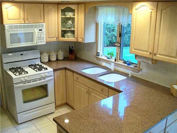 Sparkling Colonial makes a perfect holiday gift if you expect perfection! Oversized bright Great Room with new carpeting, Floor to ceiling stone Gas Fireplace. Perfect for family gatherings! Modern kitchen offers ceramic fls, light oak cabinets, granite counter tops, deep double dish porcelain sink and additional boxed out sliding glass door! Appliances stay! Formal Dining Rm or Den. Roomy main bath, double vanity, deep soaking tub and linen closet! Dry bsmt , 11 & 12couse area could be finished! Garage extra deep, deck overlooks private lot and well landscaped with new Driveway! Hello Santa!