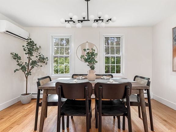 Exquisitely renovated 4 bedroom, 3 bath Colonial delivers style and sophistication at every turn; featuring hardwood flooring and recessed lighting throughout. The newly installed living room windows allow sunlight to pour through living space stretching from front to back and anchored by a fireplace. The designer kitchen boasts custom cabinetry, quartz countertops, brand new appliances, and sliders to a spacious deck overlooking the private backyard. A first floor bedroom and modern full bath provide ideal flexibility, while the second floor primary suite offers a luxurious retreat with a spa inspired bath. Two additional bedrooms and another stylish full bath complete the upper level. The finished lower level adds versatile living space perfect for a family room, man cave or office. A one car garage plus new ductless mini-splits ensure comfort year round with both air conditioning and heating.