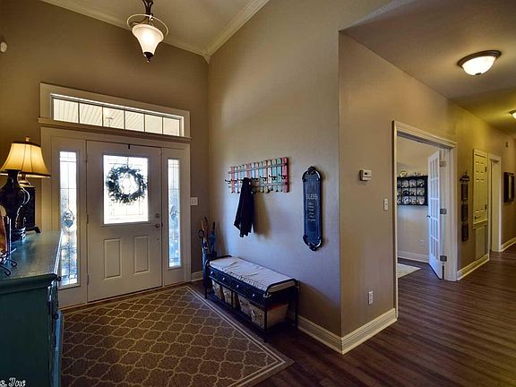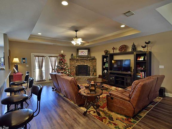 LAKE FRONT HOME!!! This 3 Bed, 2 Bath + Office has it ALL! Beautifully designed open-concept, master-split floor plan. Foyer opens to spacious Great Room with corner, stone fireplace & the latest luxury flooring! Large kitchen has huge breakfast bar & generous dining. French doors open to formal dining with 14' ceilings! Custom designed office! Heated/cooled garage! Shed! Back covered patio overlooks fenced yard & lake with private gazebo & dock! All this on a cul-de-sac in a family friendly neighborhood!
