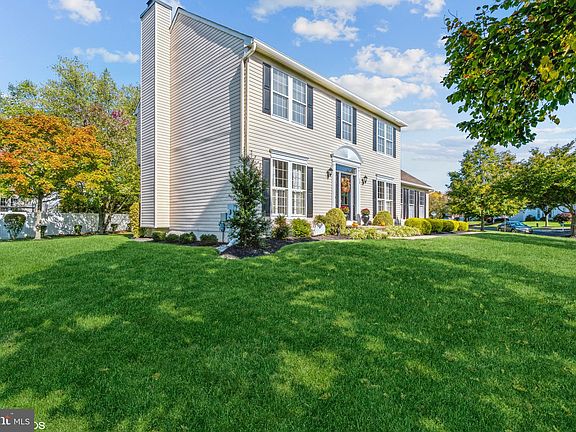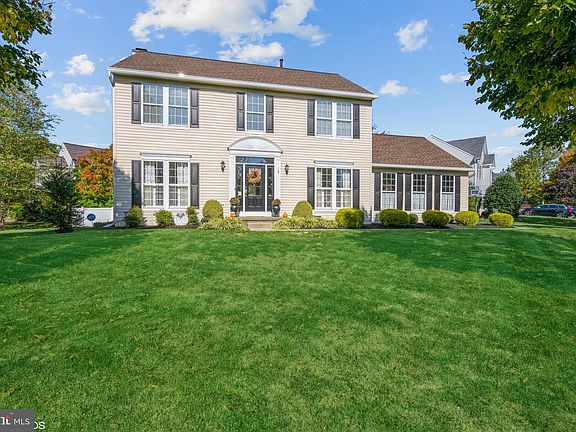 Mershon Chase, at Brandon Farms, popular and expanded Savoy model with an interior location on over a third of an acre, professionally landscaped & manicured yard including perennial gardens, oversized custom deck, a rarity for Brandon Farms, a 2-car side-entry garage with automatic opener and a full basement. This four bedroom, two and a half bath colonial with instant curb appeal from the manicured yard and landscaping to the newly sealed driveway! Enter through the front, Jeld-Wen door to the entry foyer and main hallway with updated powder room, the coat closet, basement access & leads way through the main hallway into the kitchen, dinette & family rooms. There are 9' ceilings, 5” floor moldings and Pinnacle Hickory hardwood flooring throughout this level. The formal living room, to the left as you enter the foyer is light and bright and features custom Plantation shutters, rods & drapes. (Could alternatively be used as home office) The formal dining room, to the right, boasts Plantation shutters, rods and drapes, a decorative chandelier & convenient kitchen access. The gourmet Eat-In Kitchen, and heart of this home features 42” wood cabinets with bubble glass display uppers, accent hardware, granite counters with Travertine backsplash, double, stainless under mount sinks w/upgraded faucet, LZ Susan, customized expanded center island with breakfast seating, built-in cookbook shelf, pendant accent lighting, pantry & all stainless LG appliances, including a 5-burner, self-clean range, built-in microwave, dishwasher and a built-in French door refrigerator w/pull out freezer drawer and exterior ice/water. The breakfast/dinette area features access, through a sliding door and transom window, to the rear private deck & yard. The adjoining family room boasts a woodburning fireplace w/slate surround, mantle, accent lighting & back yard views. The powder room with wainscotting, pedestal sink and accent lighting complete this level. The Williamsburg staircase with waterfall carpeting (runner), to the 2nd level hallway with linen closet and scuttle attic access, leads way to the primary bedroom suite which features toned walls, walk-in closet and private bath with newer raised height vanity with Carrera marble counter, accent mirror, double undermount sinks, ceramic tile floor, garden tub and shower stall. There are 3 additional bedrooms with custom window treatments, ample closet storage & the main, full hall bath w/tub/shower, vanity with one-piece counter, full mirror & accent lighting. There are hardwood floors & 2” blinds throughout the 2nd level. Last and not least, the full basement with utility area and laundry alcove complete with washer/dryer and new utility tub. ROOF 2014. See property update list on bright! Excellent access to NJ Transit-Hamilton station only 10 minutes away! Community Pool is an extra seasonal fee of $400.00.