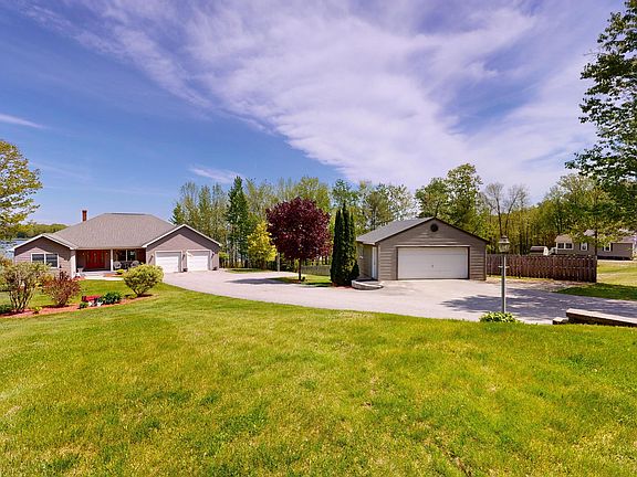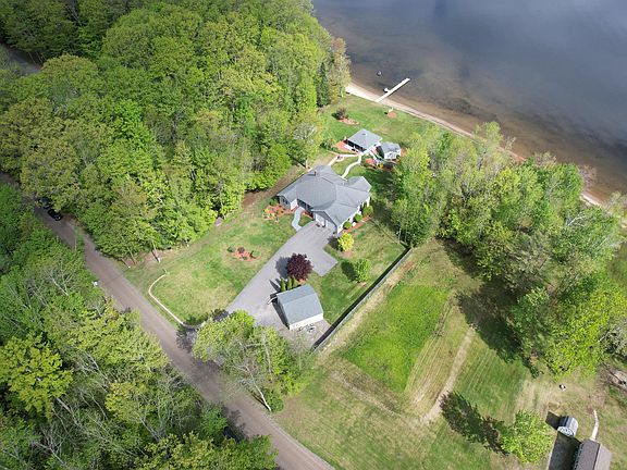 This stunning custom-built lakefront home boasts 200' of water frontage with a sandy beach with breathtaking lake views from every window. The open concept design features 4 spacious bedrooms, 2.5 baths, and large rooms with 14 ft. vaulted ceilings. The gourmet kitchen is adorned with quartz countertops, and the finished basement includes a bar, perfect for entertaining. Enjoy the abundant wildlife, including loons and eagles, and relax in the cozy bunk house. The meticulously landscaped grounds are filled with perennials. Outdoor living is a delight with a 24 x 24 gazebo featuring an outdoor kitchen. The property also includes an attached 2-car garage and a detached 2-car garage. This is lakefront living at its finest!