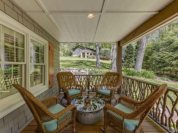 Azalea Cottage - a perfect blend of everything a Highlands getaway should offer. This ultra charming, fully renovated cottage with garage sits on 1.23+/- acres of lushly landscaped property that will envelope you in privacy. Mature trees, a pond surrounded by wildflowers, abundant hostas, rhododendron and day lillies greet you along every step of your walk around the property. The stone entry and walkway invite you to relax on the covered front porch and enjoy the beauty of the blooming dogwood that is the centerpiece of the front garden. Once inside you will be delighted by the sophisticated charm of the home with its roaring fireplace, curated antique pieces and comfortable ambiance ideally suited for an afternoon of conversation, relaxing or enjoying a good book. The kitchen has abundant storage and is big enough for two cooks with a spacious island set up for conversations with the cook. The dining room is large enough to host a dinner party for 8 or opt for al fresco dining on the screened back porch with floor to ceiling views of the gorgeous backyard and it's wildlife visitors. Relax afterwards in the cozy lounge area of the porch before retiring to the two bedrooms, each with private baths. The inside of the home is completed by a cozy open loft that can be used for extra sleeping with it's two pull-out twin sleep chairs containing true twin bed mattresses. If you must, the loft is an ideal spot for a home office and also contains a full bath with tub. Finally, the location of this home is just outside the gates of Highland Falls CC and its magnificently landscaped golf course all seen from the front porch. Membership is offered to residents of Azalea Cottage on either a social or full membership basis, but membership to Highlands Falls CC is not required. With the heart of Main Street Highlands just 2 miles away, Azalea Cottage will win your heart. BEING SOLD COMPLETELY FURNISHED (forks to furniture) (with a few exclusions).
