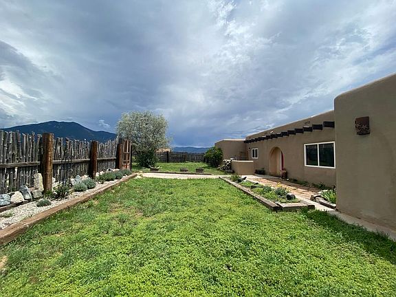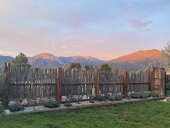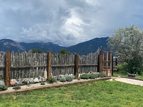 Enjoy stunning 360 views and easy access to town services from this spacious home located on 2 acres just off the Taos Ski Valley Road. The property is being offered unfurnished with the exception of full-sized washer and dryer and fridge which are included. Big country kitchen with center island counter seating for 6 place +dining table area, large sun-room and living room. Heat sources include natural gas wall furnace, baseboard in all rooms, electric panels (bedrooms), wood stove and fireplace. Large fenced front yard. Huge (private) fenced backyard with excellent raised beds for gardening, plenty of parking area with room for small RV , trailer or second vehicle. Rent includes water, trash service and high-speed internet and use of an 8' X16' workshop/storage shed. Tenant pays natural gas and electric plus elected services.... cable tv etc. 6 month minimum lease with up to one year initial term and conditional renewal options from there forward. Rent is $2,700.00 per month. Move-in requires $1,500.00 security deposit and 1/2 of last months rent ($1,350.00) plus first month for a total of $5,550.00 Pet considered with additional deposit. NOTE: As the owner I maintain a (part-time) studio apt. on the property with separate parking, separate entrance and separate fenced yard. Typically I am there a couple of days every few months and sometimes more frequently during ski season. Tenant Pays natural gas and electric, landlord pays internet, water and trash. 6 month minimum lease, longer terms considered case by case. Dog and/or cats considered on a case by case basis with extra $250. security deposit per pet. Landlord is responsible for front and side yard maintenance, tenant maintains private backyard. See other terms in the Property Info section. In addition to security deposit of $1,500.00, "50% of last month's rent" ($1,350.00) also required prior to move-in.