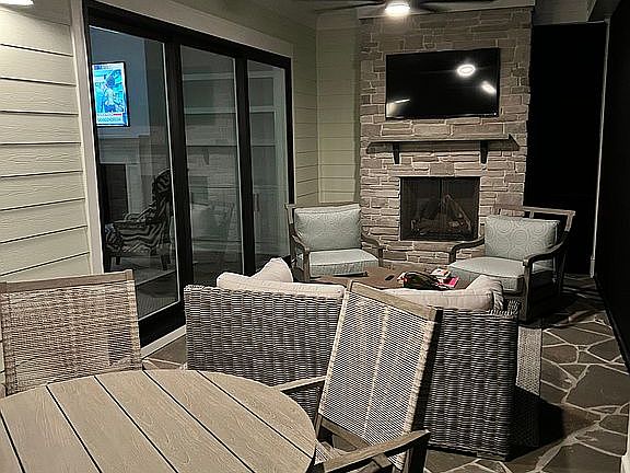 Large open space first floor includes owners suite, beautiful open kitchen looking over family room with quartz countertops six burner range and additional separate wall oven and microwave. First floor study, spacious dining room and ten foot ceilings with eight foot doorways. Mud room off the garage entrance guest powder and laundry room. Hardwood floors throughout first and second floors. Wi-Fi controlled Indoor and outdoor lighting and CAT 5 cabling throughout. Large owners on suite with walk-in shower separate soaking tub and oversized walk-in closet with laundry room access. Beautiful back patio covered in flagstone with stone covered fireplace. Outdoors kitchen including grill, refrigerator and exhaust system. Step off the patio into backyard. Patio enclosed with remote control screens opening as desired and two large fans. Second floor offers 4 bedrooms and three full baths including Jack and Jill bathroom. Recreational room comes finished with wet bar, theatre sound system and overlooks the t-box for the eighteenth hole. Protected power outages with whole house Generac generator. Tankless hot water system and certified Bronze level energy efficient home.