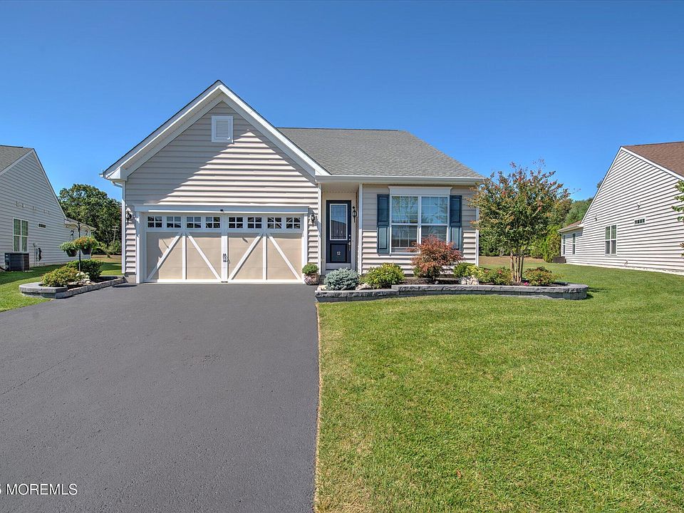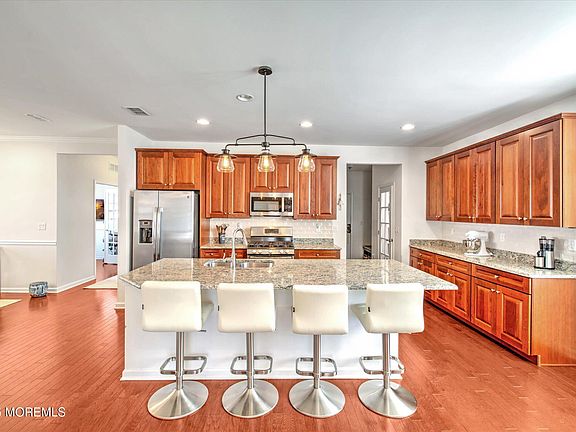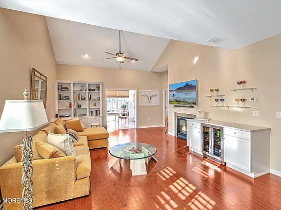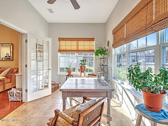 Exceptional home on expanded lot in gated premier 55+ community of Four Seasons @ Monmouth Woods.Monterey ll 3 BR 3 Full BA w/ 22x17 loft, 4 FT exp primary suite, sun rm .Open Flr plan.Gas F/P, Volume ceilings,deco moldings,rec lights.newly painted,custom window treats ,french doors & engineered Hrdwd flrs. Impressive CI kitchen features granite C/tops & SS appls. F/R w/cathedral ceiling,built in bar & bookcase & glass enclosed FP( remote control & blows hot air for warmth). MBR has tray ceiling ,custom WI closet & ceiling fan. MBA w/dble sinks,2 medicine cabinets,large shower w/bench,private commode, Laundry RM & mud rm area.Large storage rm. Huge patio w/privavcy wall,fire pit,lighting,new electric awning & BBQ.Garage Refrig. Beautiful Clubhouse:pool gym,Tennis,Pickle Ball Large Attic for storage.