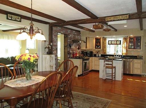 Beautiful hip roof ranch offers it all! Completely updated all on one level! open concept great for entertaining! has tons of charm! gourmet kitchen with custom Island opens to dining room family room and living room that has built ins, surround sound, fireplace, gleaming hardwood floors, skylights,wide pocket doors, large bath with state of the art walk in shower, all rooms are great size! bright large family room overlooking private backyard ! large deck beautiful garden views! farmers porch charming brick patio & stone walls, dual driveways for plenty of parking! "Handicap accessible if needed! or just easy living" don't miss out on this beautiful home in a peaceful setting"
