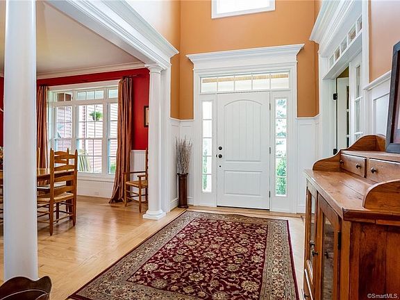 Classic New England Colonial/Contemp embraces you with every amenity & charm from the gracious front porch to the picture-perfect lot with in-ground pool to the amazing first-floor master suite with tiled spa bath. Ample flowing space with 4193 sq ft plus finished space in lower level. A total of 4 bedrooms and 3.2 baths. Sweeping open floor concept on the main level encompasses a large family room with fireplace and wood lined cathedral ceiling, large bright dining area and a fabulous chef's kitchen with an amazing island for entertaining, hardwood floors, granite and high-end stainless appliances. Lovely decorator colors in muted historic tones add depth and warmth to this space. The huge walk-in pantry off the kitchen is a dream come true along with the large first-floor laundry room. A second sitting room invites you for quiet times. The wainscoted mudroom leads to the 3 car garage. Upstairs finds three more bedrooms with walk-in closets, an on suite bath and jack in Jill baths, plus a large family room retreat. The finished lower level is complete with exercise and weight rooms, bar, large family room/media area, pool table/game room, and a half bath. This spacious area with hardwood floors provides an area to entertain and relax in comforting colors and décor. Quality and detail throughout. Convenient to all amenities with top-notch schools, Farmington River recreation, and parks. This home leaves nothing off your wish list. You are home in every sense of the word.