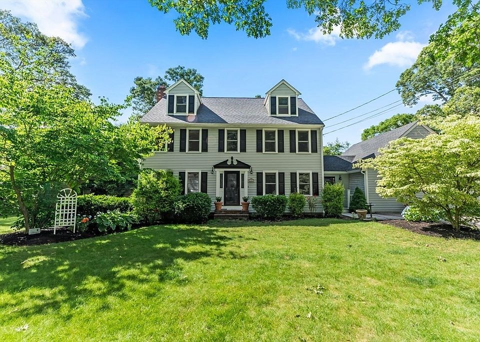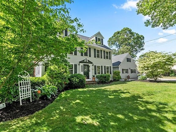 OFFER DEADLINE 6pm SATURDAY With deeded beach rights to Landing Beach, this oversized 3BR Colonial lives much larger. A converted two-car garage now hosts an accessory dwelling with large living room, bedroom and kitchenette. With its own entrance, this is a perfect in-law suite, office, or space for multi-generational living. Pass through the breezeway and full bath and enter the open-plan first floor. The kitchen and living room space has a breakfast nook, fireplace and sliders that open to the new backyard deck which runs the length of the house and overlooks a level large side yard - great for hosting summer parties! Upstairs are three large and bright bedrooms, including a primary ensuite and another full bath. Head down the hall to a staircase which leads to a finished open third floor with skylights, window seats and built-in cabinets and shelves - perfect for another bedroom, home office or playroom. Partially finished lower level also - this home is move-in ready!