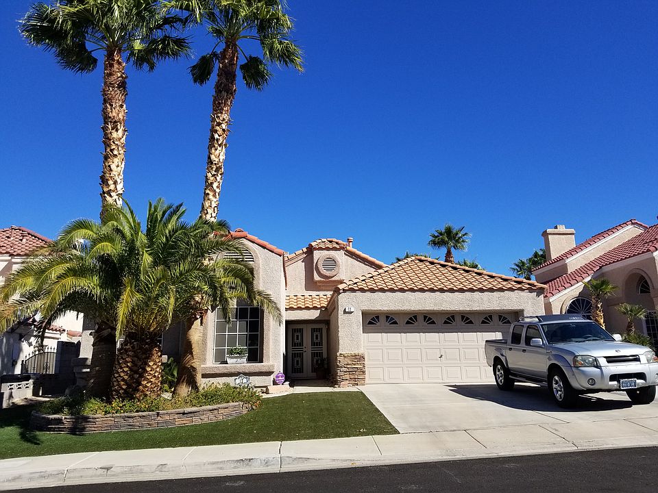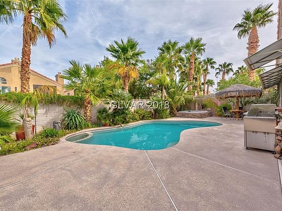 Private Oasis & Curb appeal on this amazing Green Valley 1 story home cul-de-sac complete w/upgraded kitchen,immaculate pool & spa w/water feature.Solar screens,outdoor TV,lush tropical landscaping,covered patio tiki hut.Many personal items conveyed w/this house that make it a home(ask for complete list).Granite counter tops,SS appliances+B/I Beverage fridge.Central vaccum,tool bench,add'l storage,water softener,Tile t/o except carpet in 3 beds.