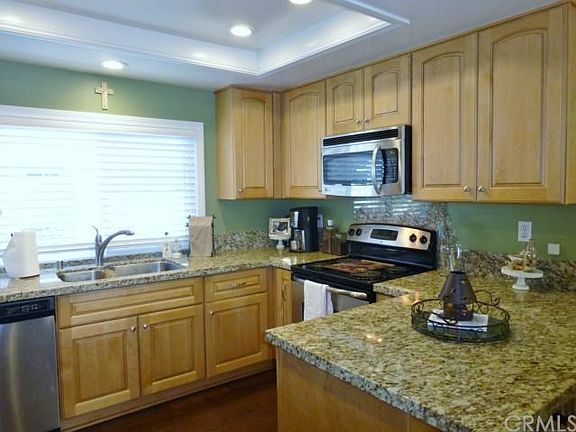 Remodeled Heritage Park Townhome. Over $50,000 in gorgeous upgrades & improvements! Great location near Yale & Walnut in the middle of Irvine on a quiet street. Largest floor plan that includes a covered patio & 2-car garage with direct access, lots of storage. 3 bedrooms, 2.5 baths, vaulted ceilings in main entry & living room. End unit, only the garage shares a common wall. Upgrades include: Milguard Windows; maple glazed kitchen cabinets & hardware; granite countertop w/breakfast bar; stainless steel appliances; new kitchen sink & faucet; recessed lighting in kitchen & all bathrooms; scraped ceilings throughout; new lighting in dining room & entry; hand scraped real wood floors; designer painting throughout entire home; newer AC/furnace. Amenities include adult pool & wading pool. Walk to nearby Blue Ribbon Schools & Heritage Park which includes basketball court, baseball field, tennis courts, racquetball, volleyball, & large pond. Close to famous William Woollett Aquatic Center, which has an Olympic-size swimming pool & 5 Minute stroll to the Heritage Park Regional Library. Close to Shopping, Restaurants & Entertainment. Easy Access to 5 Fwy. To make an appointment to view this lovely home call Sheri, agent, at 949 697-5371. BRE #01502357