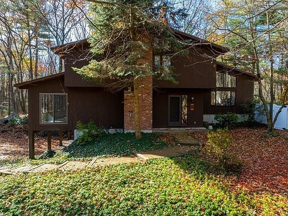 NEW to SPRING MARKET! his is a house with a presence like no other. Welcome to this designer post and beam Deck House built specifically to complement the raw 9.53 acres of land with a private pond upon which it sits. A balance of beautiful hardwoods combined with modern architectural windows. It lets in the natural light and stunning views. Soaring ceilings, defined by exposed beams, fine cedar fir, mahogany accents, and open interiors, are the Deck House signatures, providing a transfer between inside and outside landscapes. Contours of the sloping land and massive outcrops are echoed in the homes on multiple levels. The structure almost appears to be cascading down the hillside. With two fireplaces and 3 bedrooms. (two with walk-in closets) and 3 bathrooms, and an oversized garage. There is a fenced in back area for pets. This home is durable and easy to maintain, providing magical enjoyment for years to come. New Septic with Certs.