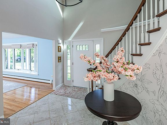 Situated on 3.66 acres with unparalleled privacy in back and sprawling farmland nearby, this stone-accented home is a refined take on country living, complete with a Princeton address. Savor the peace and quiet out on the patio, the deck or under the cover of the skylit sunroom knowing that all the amenities of downtown and Pennington Borough are just minutes away. The interior begins with an airy tiled foyer featuring a sweeping staircase and wide open view into the naturally bright formal rooms. Hardwood floors continue through to the kitchen, where you can pull up a seat at the peninsula topped with attractive gray stone and cook to your hearts content with stainless steel appliances. Around the corner, a wet bar serves the family room warmed by a wood stove set within a stone wall, all surrounded by ambient uplighting. Perhaps the most beautiful space is also the hardest working! The mudroom with half bath was renovated to perfection with a stacked washer/dryer, durable oversized tile, pretty wallpaper and space galore. The home’s other bathrooms were also delightfully refreshed, including one beside a huge walk-in closet within a first floor suite that can easily serve as the primary. Should everyone wish to be on the same level, another serene suite is right upstairs. A whimsically decorated hall bath serves two more large bedrooms and a big bonus room with new carpeting. Don’t miss all the walk-in storage accessible to all in the hallway. That’s not all - there’s a corner office and a semi-finished room down in the sprawling basement ripe with potential.