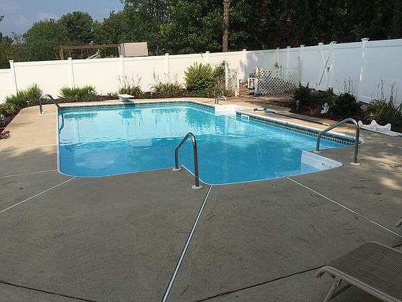 This SPACIOUS HOME with 4 bedrooms and 2 1/2 baths is READY and WAITING for you. Dining room has laminate floors and decorative molding, located conveniently off the kitchen. KITCHEN has a dining area, breakfast bar w/overhang for seating,and a slider leading to the rear yard. Formal living room has carpet and family room is large featuring carpet too. MASTER SUITE has WALK IN CLOSET w/custom shelves, full bath with decorative vanity, and shower stall. All bedrooms upstairs have carpet, full bath upstairs has decorative vanity, tub w/custom tile. YOUR DREAM BACKYARD AWAITS YOU, with 18x34 inground pool, w/concrete patio, beautiful two tiered landscaping, additional sitting area directly off kitchen slider w/paver walk to pool, yard is fully fenced,property backs to woods for privacy.