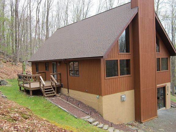 Stunning Chalet home for sale on 2.2 acres located in Cobbs Lake Preserve, 8 miles from Honesdale Pa and 6 miles from Hamlin Pa! This quiet and private community is a 400 acre nature preserve with its own 42 acre lake for fishing and swimming, hiking trails, 180 acres for hunting, central water, clubhouse, garbage service, and more. This Chalet is perfectly maintained, spotlessly clean, and features 3 bedrooms, 3 baths, cathedral ceiling living room with fireplace and floor to ceiling stone More...