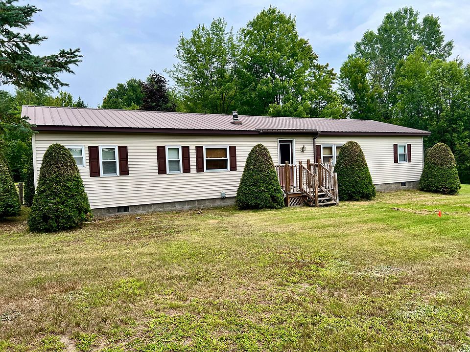 Ranch style home sitting on a very peaceful 15.9 acres. Property borders riding trails. Bar off the living room could be converted to a third bedroom or den if needed. Wood furnace in entryway along with a hot air furnace keeps the home plenty warm. Subfloor updated and walls were furred out to provide proper insulation. Plenty of wildlife on the property, set up a showing!