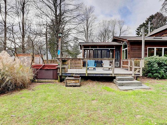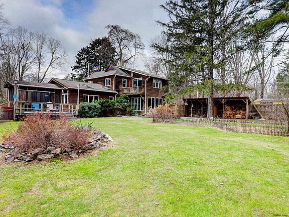 Welcome home to this stylish 3-bedroom, 2-bathroom contemporary that captures the essence of comfortable living. Experience a sense of warmth and privacy, with features that make it a true haven. The bluestone pathway will lead you into the spacious entryway/mudroom. The cozy living room has an abundance of natural light from the large windows with skylights above and vaulted beamed ceilings. The kitchen features wood cabinetry with Corian counter tops, stainless steel appliances, large pantry, and an Encore woodburning stove. The adjoining dining room is spacious enough to seat a large gathering. The full bathroom with laundry area completes the main floor. The second floor offers a spacious primary bedroom with a private balcony and custom-made built-in dresser drawers allowing plenty of room for storage. Two additional bedrooms and a full bathroom complete the second floor. Beautiful hardwood floors throughout and central air conditioning. Interior access to the finished basement allowing plenty of opportunity for a home office, media room or additional living space. Step outside to discover the enchanting, screened porch seamlessly merging indoor and outdoor living. The fenced in yard offers a secure and private oasis, perfect for entertaining or just relaxing in the hot tub. This property has many bonuses outside as well. Detached two car garage/barn currently set up as a woodshop with a three-phase electricity supply, outdoor shower area, open woodshed, gardeners shed, chicken coop and a separately fenced garden area with organically cultivated beds and irrigation system. This small hamlet is situated in the beautiful Hudson Valley and offers a unique blend of small-town charm and convenience with easy access to unique shops, great restaurants, Rosendale theatre, and Trailways bus station. Minutes from High Falls, Stone Ridge, orchards, microbreweries, Hudson Valley’s iconic resort the Mohonk Mountain House, Inness golf course, and easy access to the ever-expanding rail trail for hiking and biking. Centrally located between the Village of New Paltz, Kingston’s Uptown Stockade District and the historic Rondout Waterfront. Only 15 minutes to the NYS Thruway and 90 minutes from Metro, NY. This home could be your idyllic weekend getaway or full-time residence.
