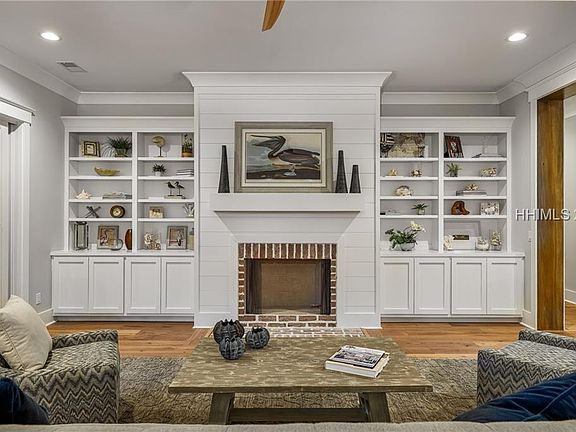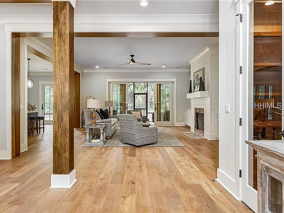 Rare opportunity to own this custom built home on Spring Island! A wonderful southern home with attention to detail. Located in the wonderful natural setting of Spring Island on the 13th hole of the Old Tabby Links. * Open floorplan with spacious great room & gourmet kitchen * Beautiful hardwood floors * Upgraded fixtures, finishes & appliances * Dedicated wine room, private office, media room * Master bedroom suite with his/hers walk-in closets & sitting room * Large second & third bedrooms, each with private baths * Rear screened porch & separate grilling patio * 2 car+golf cart garage * Hardi Plank siding, board & batten accents