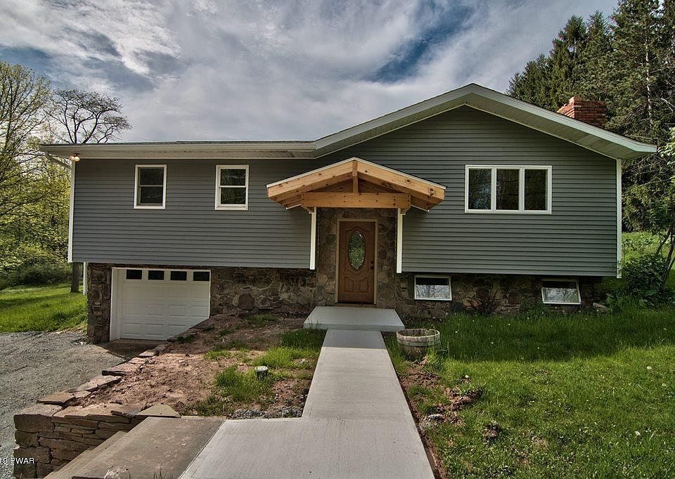 Awesome, completely renovated Bi-level in Bethany! Take a look at this amazing 3 bedroom, 1 bath home situated on 1.1 acres just outside of Honesdale. Features include cathedral ceilings, open floor plan, living room with beautiful stone faced fireplace, eat-in kitchen with center island and stainless appliances, and dining area which leads to the back deck perfect for summer grilling! 2 generous bedrooms on the main level with a large full bath. Lower level offers a spacious family room and additional bedroom. The 1 car attached garage, nice, private back yard complete this package! Updates include new siding, flooring, kitchen cabinets, counter tops, appliances, lighting, etc!