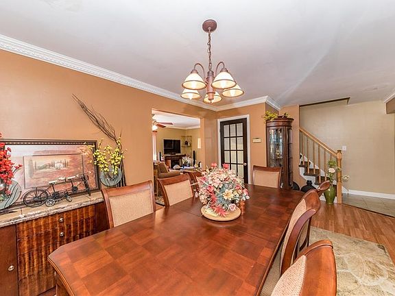Make this charming 3 bed 2 1/2 bath townhouse your new home. On the 1st level you will find a ceramic tiled foyer, a powder room w/ lovely ivory vanity, the large living room w/ sliding glass doors that lead to the rear deck, a spacious dining room just off the eat in kitchen which features hardwood cabinets, granite counter tops, beautiful tile back splash, & bay window. Make your way up to the 2nd level where you will find, the main bath, & 3 sizable bedrooms including the master suite w/ full bath. Additional features include 2 parking spaces, hardwood floors, wall to wall carpeting in the bedrooms, lovely light fixtures, & a fully finished basement w/ laundry room. Conveniently located near major highways. Makes a great starter home.