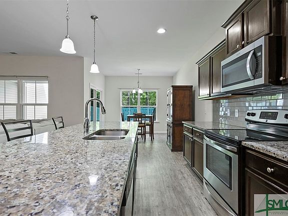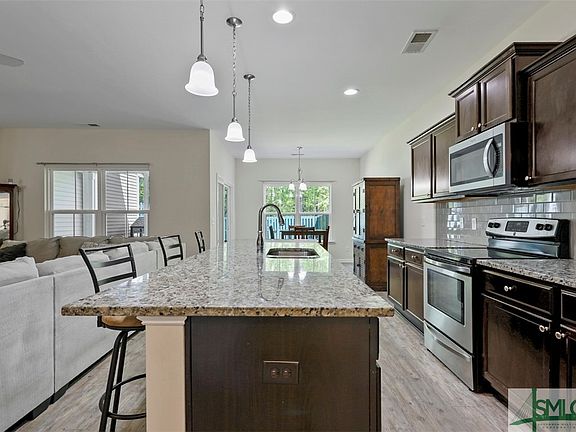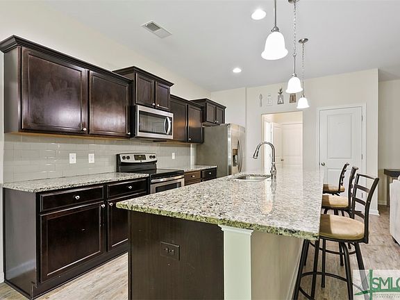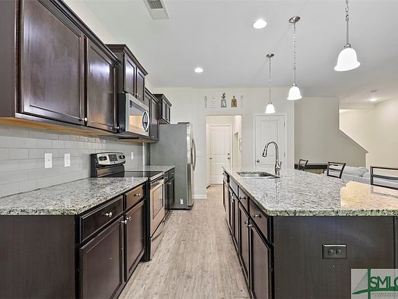 WOW!! This home is magazine ready - immaculate, well cared for, and upgraded. 3 bedroom/2.5 bath home in the amenity filled community of The Commons. Step inside to a light filled bright living space! Gorgeous kitchen, beautiful granite counters, tons of storage space, and all stainless steel appliances. The spacious living area is complete with a beautiful fireplace. The dining area opens to a covered screened patio. The backyard is HUGE and completely fenced with a wooded view. Once upstairs, you'll find 3 big bedrooms and 2 full baths, plus a big loft area. Tons of closet space and beautiful bathrooms. Upgrades include: screened in porch, gutters, and storm doors! This exceptional home is situated in a community with resort style amenities: zero entry pool, pavilion, fire pits, and more. As a bonus, HOA fee includes lawn care. Super close to everything, easy drive to Ft Stewart, Hunter AAF, and great public schools!