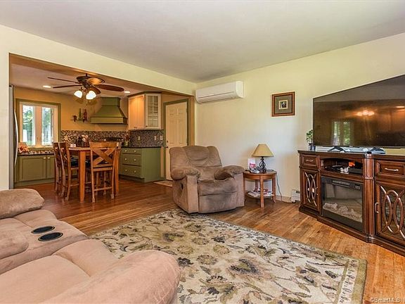 Your one-level living awaits This beautiful home is nestled in a quiet neighborhood in Mystic and is filled with charm and tasteful remodels. The kitchen offers generous granite counter space, built in mixer stand and baking stations, soft close cabinets, and updated appliances including a touch-on sink. An updated tile bathroom, hardwood floors, and two closet organizers make up the rest of the main level. Ductless AC, updated mechanicals, and a partially finished basement. The basement is separately zoned, has carpet and ceiling tile and a flue for a wood stove. There's a peaceful and private fenced in backyard with a new shed and bulkhead door. This home is conveniently located near the highway, Downtown and Old Mystic attractions, and not far from the casinos, EB, or Pfizer. Don't miss what this cozy Mystic home has to offer ***Seller to CREDIT buyer cost to sand and refinish wood floors at closing Ask your agent for the property packet and list of improvements. Slight discoloration of paint on front of home was due to location of old water meter and window unit AC.