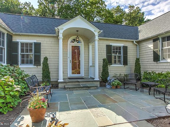 Nestled in a sylvan picturebook setting! Beautiful seamlessly expanded traditional home thoughtfully designed by Jeffrey Lees. Living Room w/fireplace, Dining Room w/stone FP wall opens to Kitchen w/custom tiger maple cabinetry & soapstone counters. Family Room w/built-ins & fireplace. Fabulous vaulted Master Bedroom suite w/Dressing Room & Bath. 2 additional en-suite Bedrooms w/private Sitting Room sit to one end of the house with the Study, Bedroom #4, and the oversized heated 3-car Garage w/attached Workshop to the other. Stone Patios, beautifully landscaped grounds & gardens.